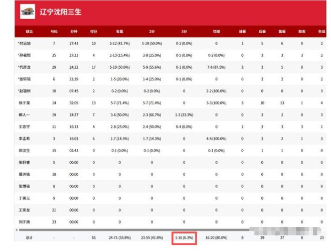 代表辽宁队后备力量的U19青年军,在最近的青年联赛中,不断打出耻辱数据,战山西居然创了60次罚球的纪录,也仅仅是小胜6分,前天创了13中1的三分命中率纪录,昨天又打破了这一纪录,三分16中1,命中率仅有6.3%,并狂输广厦队38分,真是太丢人了。