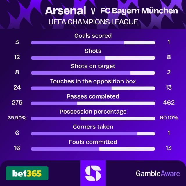 欧冠联赛阶段第5轮迎来一场焦点大战,分列积分榜前两名的拜仁慕尼黑和阿森纳狭路相逢。两队均在联赛中领跑且近期状态正佳。上半场于里恩·廷伯在角球中头球破门,伦纳特·卡尔扳平比分。下半场马杜埃凯和马丁内利两名替补出场的球员先后建功,阿森纳主场3比1送给拜仁赛季首败,以全胜的傲人战绩独自领跑积分榜。